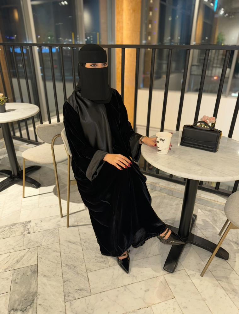 عباية فخمة من قماش المخمل الفاخر، بتصميم أنيق يميّزها تفصيل التفته من عند الصدر الأيمن والأكمام، يضيف لمسة ناعمة من اللمعان والرقي. القَصّة انسيابية تمنح حضور راقٍ ومناسب للمناسبات المسائية أو الإطلالات المميزة ..