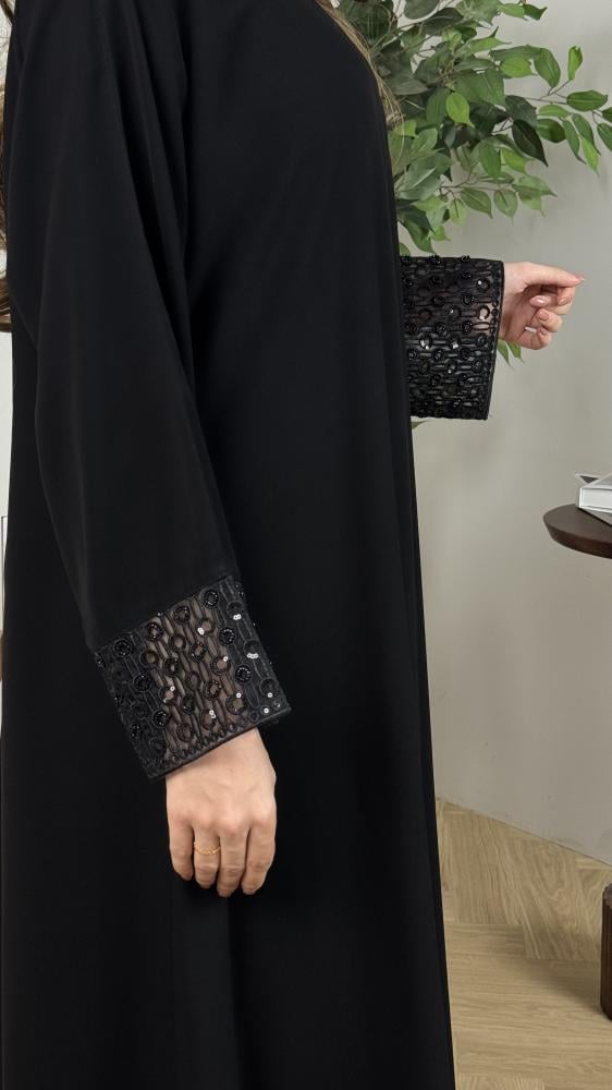 تتميز عباية ذكرى بتصميم انسيابي بسيط وعصري .. العباية تاتي بـ"كلفة" أضافت لمسة راقية إلى العباية